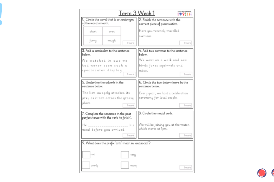 Our weekly tests are designed to provide children with regular opportunities to practise key grammar, punctuation and spelling skills. Each sheet includes a carefully chosen set of short questions that cover essential curriculum objectives, reinforcing knowledge through consistent practice. Alongside… Read More »Term 3 Week 1 Weekly Test