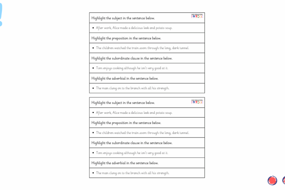Our Finish Four activities are quick, focused grammar tasks designed to reinforce key skills in a simple and engaging way. Each sheet gives children four short challenges that target essential areas of grammar, helping them to consolidate their knowledge without… Read More »Finish Four 6