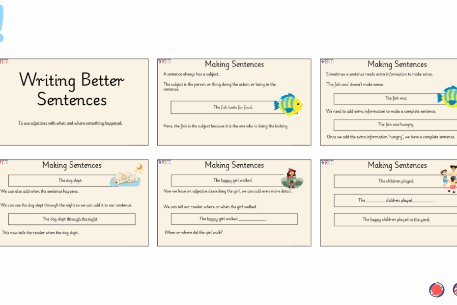 In this lesson, children bring together everything they have learned about writing simple sentences and begin extending them with meaningful detail. Pupils build on their understanding of subjects, verbs, and adjectives by learning how to add where or when an… Read More »Lesson 17