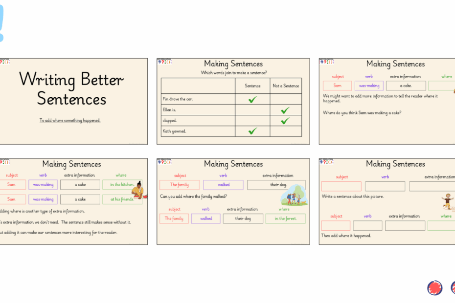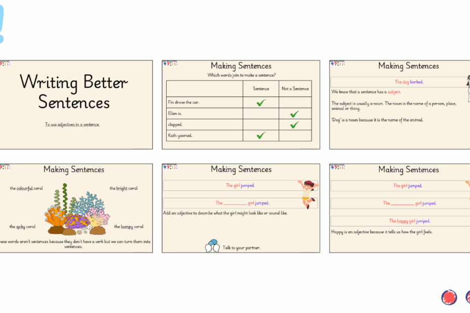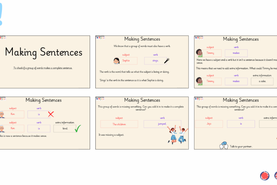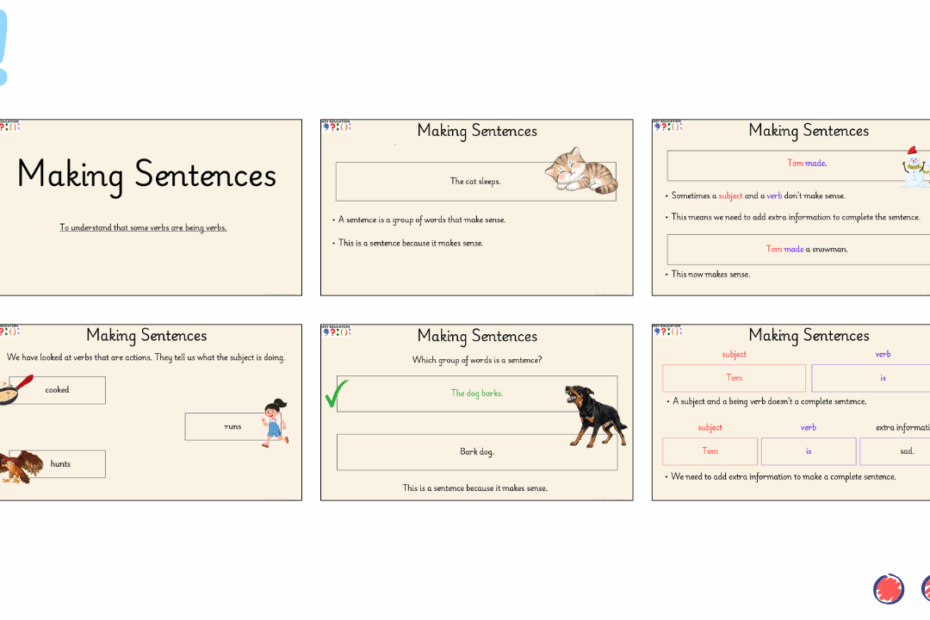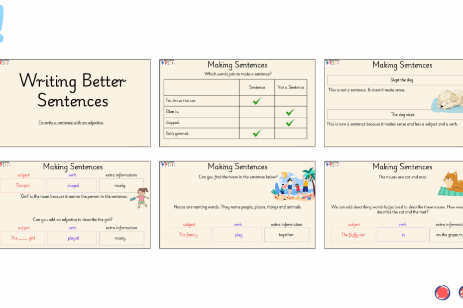 This task helps pupils recognise what a real sentence looks like — an essential foundation for early writing. Each activity focuses on understanding that sentences need to make sense, contain a subject and a verb, and have words in the… Read More »Making Sense 1