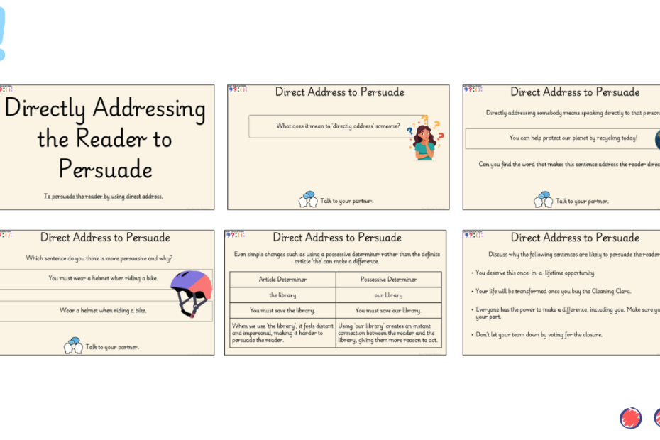 Help your pupils master persuasive writing with this complete lesson on developing a formal, confident and convincing tone. This resource teaches children how small changes in language choices can transform the impact of their writing. Through clear explanations, before-and-after examples… Read More »Changing Tone to Persuade