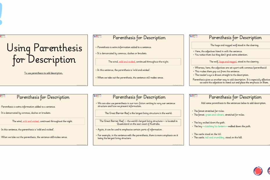 This resource helps children understand how to use parenthesis to add extra detail and emphasis in their writing. Through clear examples and engaging tasks, pupils learn how commas and dashes can be used to highlight adjectives, facts or extra information… Read More »Using Parenthesis to Add Description