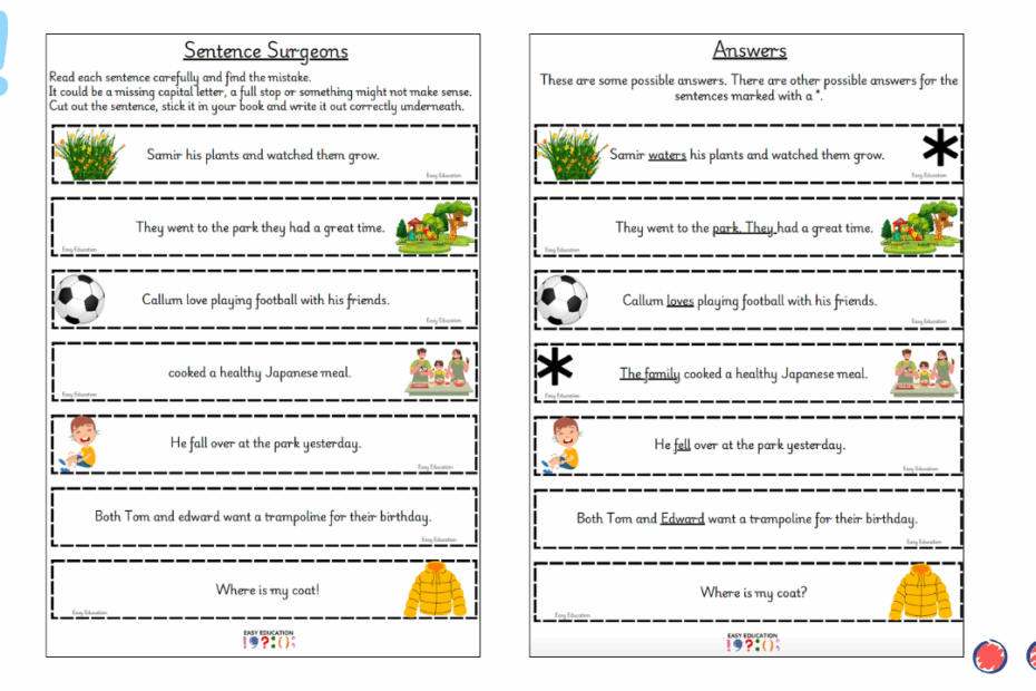 Give pupils the chance to become a ‘Sentence Surgeon’ by spotting and fixing mistakes in grammar, punctuation and sentence sense. Each activity encourages children to read carefully, identify errors, and rewrite sentences correctly, building accuracy and fluency in their writing.