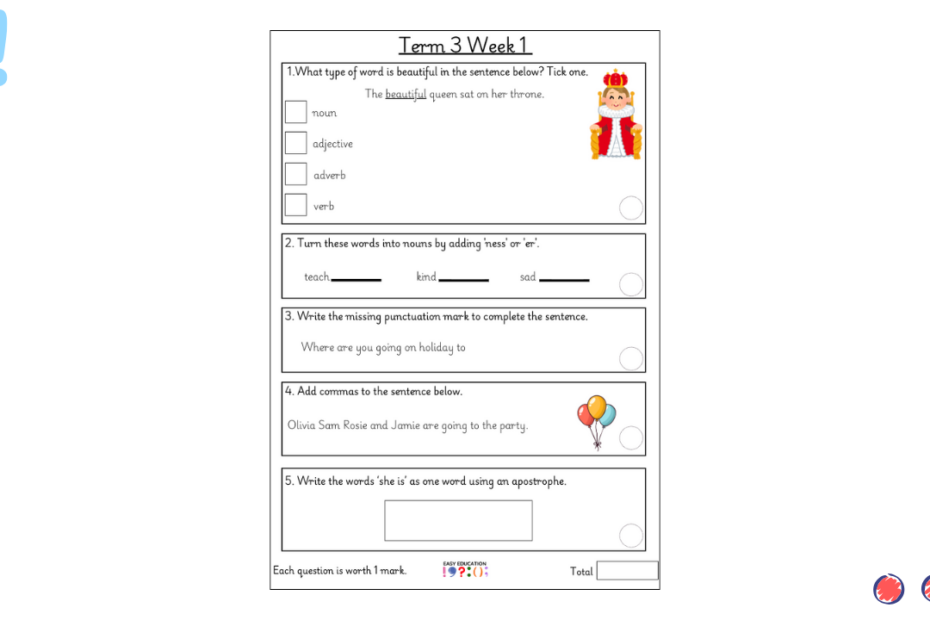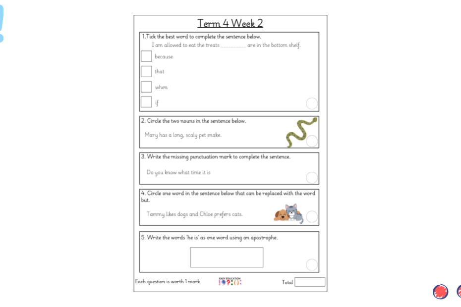 Our weekly tests are designed to provide children with regular opportunities to practise key grammar, punctuation and spelling skills. Each sheet includes a carefully chosen set of short questions that cover essential curriculum objectives, reinforcing knowledge through consistent practice. Alongside… Read More »Term 3 Week 1 Weekly Test