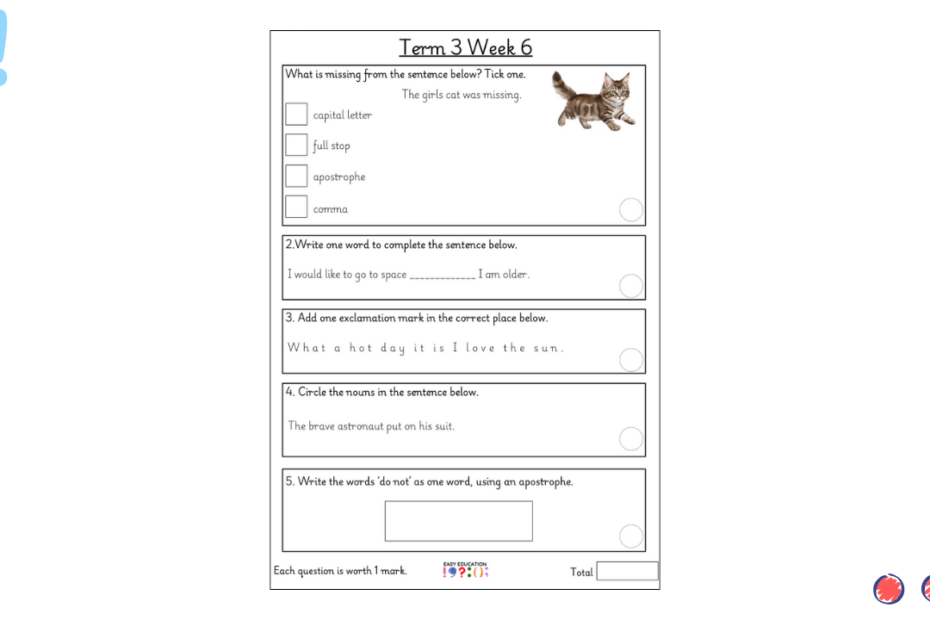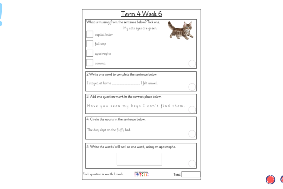 Our weekly tests are designed to provide children with regular opportunities to practise key grammar, punctuation and spelling skills. Each sheet includes a carefully chosen set of short questions that cover essential curriculum objectives, reinforcing knowledge through consistent practice. Alongside… Read More »Term 3 Week 6 Weekly Test