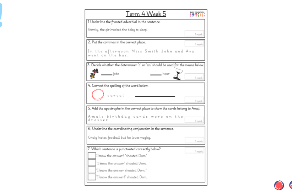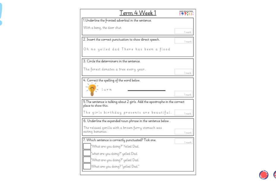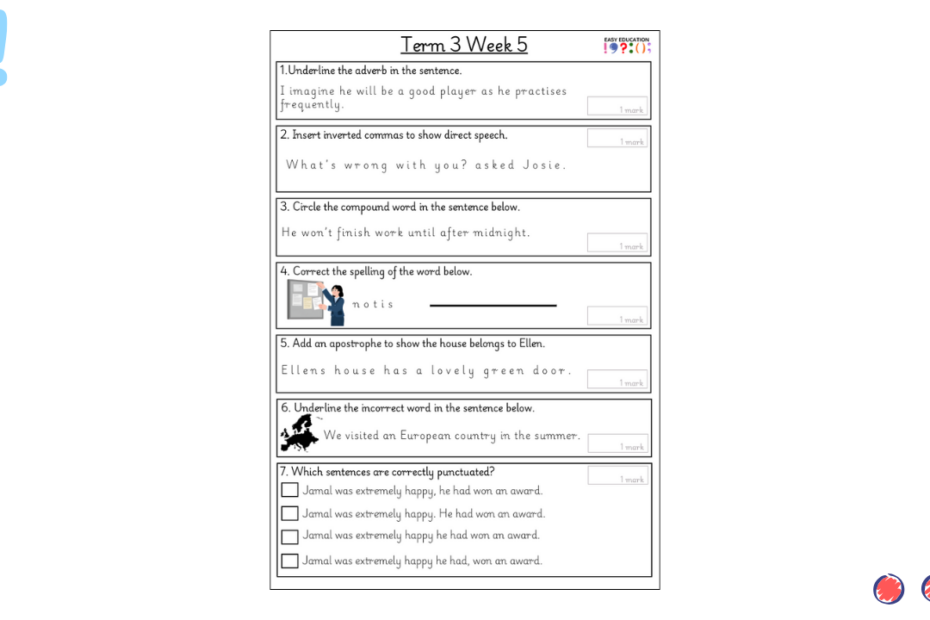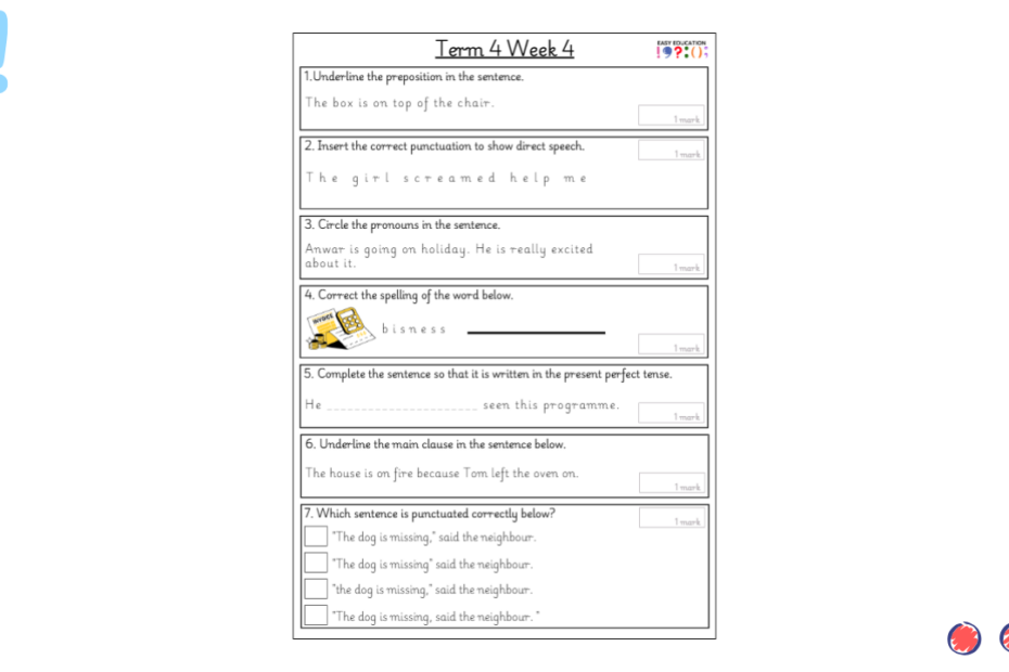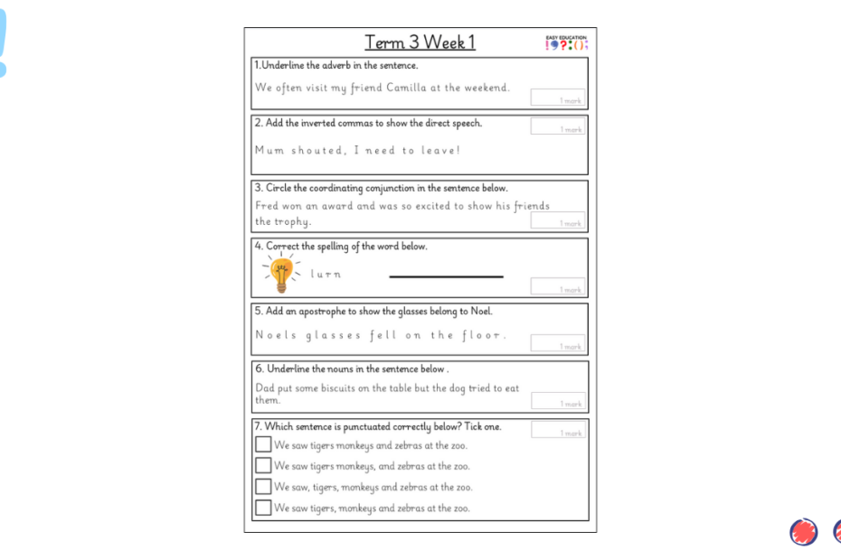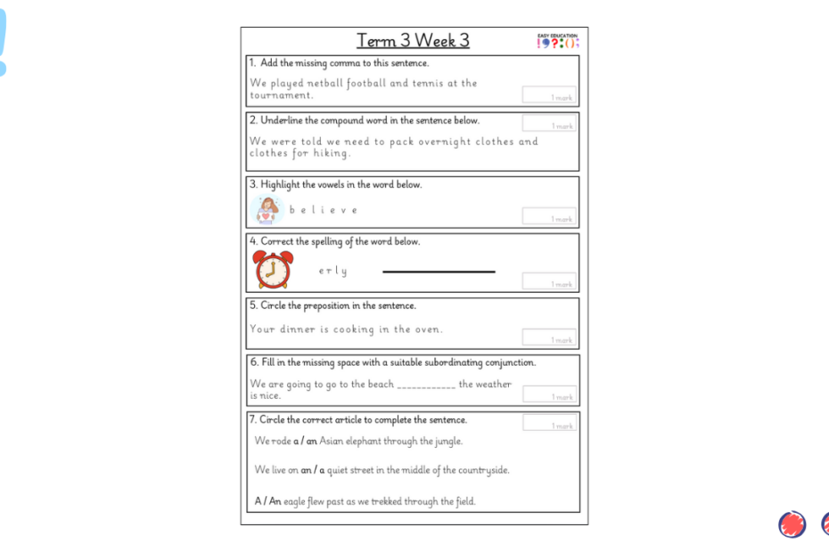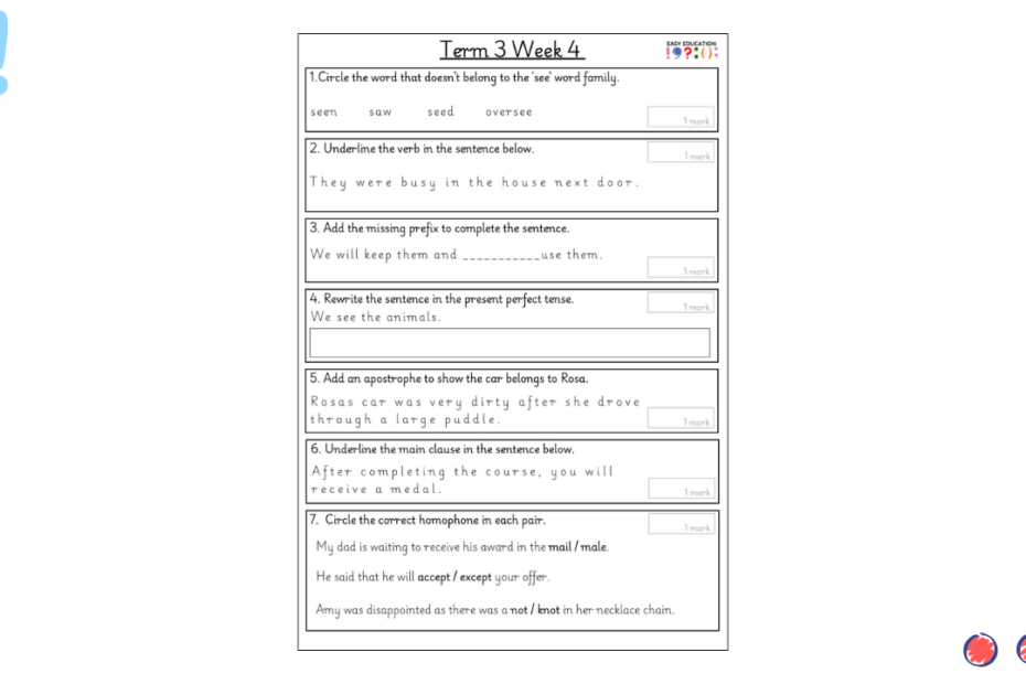 Our weekly tests are designed to provide children with regular opportunities to practise key grammar, punctuation and spelling skills. Each sheet includes a carefully chosen set of short questions that cover essential curriculum objectives, reinforcing knowledge through consistent practice. Alongside… Read More »Term 3 Week 1 Weekly Test