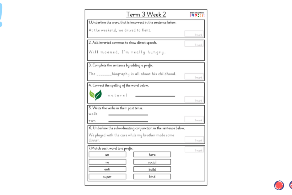 Our weekly tests are designed to provide children with regular opportunities to practise key grammar, punctuation and spelling skills. Each sheet includes a carefully chosen set of short questions that cover essential curriculum objectives, reinforcing knowledge through consistent practice. Alongside… Read More »Term 3 Week 2 Weekly Test
