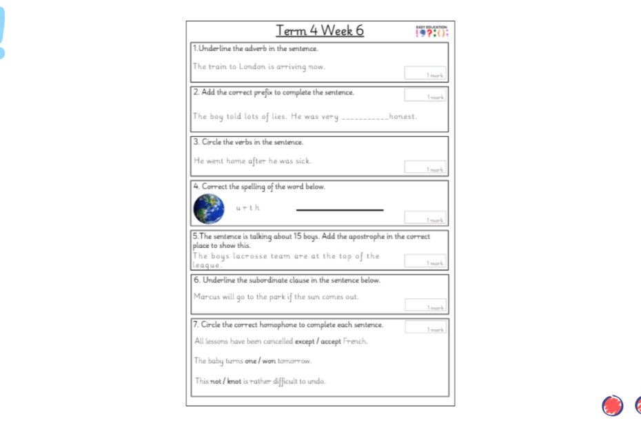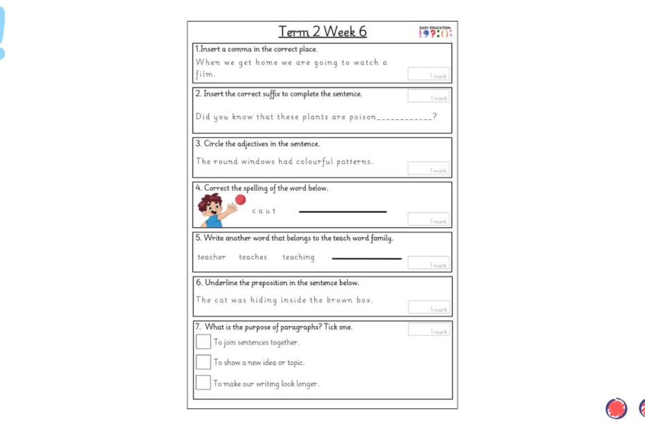 Our weekly tests are designed to provide children with regular opportunities to practise key grammar, punctuation and spelling skills. Each sheet includes a carefully chosen set of short questions that cover essential curriculum objectives, reinforcing knowledge through consistent practice. Alongside… Read More »Term 3 Week 6 Weekly Test