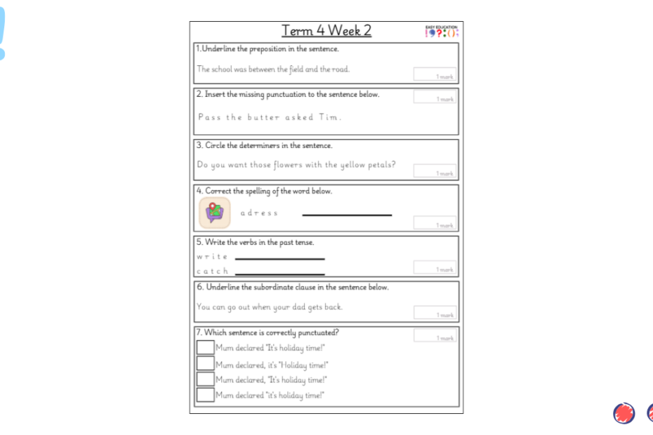 Our weekly tests are designed to provide children with regular opportunities to practise key grammar, punctuation and spelling skills. Each sheet includes a carefully chosen set of short questions that cover essential curriculum objectives, reinforcing knowledge through consistent practice. Alongside… Read More »Term 3 Week 4 Weekly Test
