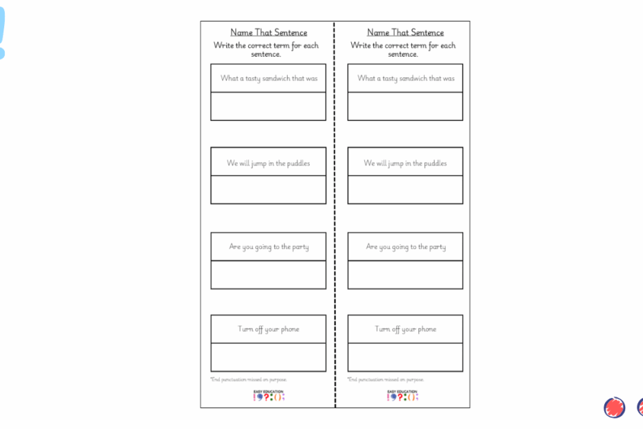 Give your pupils essential practice in recognising the four sentence types with this clean, easy-to-use set of worksheets. Each sheet includes four sentences with end punctuation intentionally removed, encouraging children to think carefully about meaning rather than relying on clues.… Read More »Name That Sentence 10