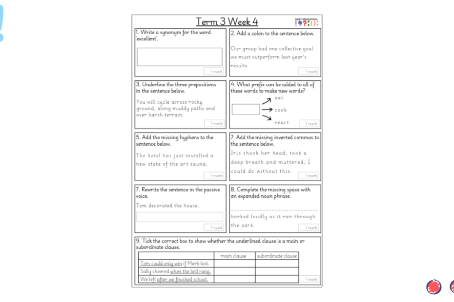 Our weekly tests are designed to provide children with regular opportunities to practise key grammar, punctuation and spelling skills. Each sheet includes a carefully chosen set of short questions that cover essential curriculum objectives, reinforcing knowledge through consistent practice. Alongside… Read More »Term 3 Week 3 Weekly Test