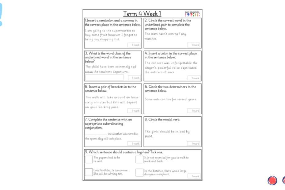 Our weekly tests are designed to provide children with regular opportunities to practise key grammar, punctuation and spelling skills. Each sheet includes a carefully chosen set of short questions that cover essential curriculum objectives, reinforcing knowledge through consistent practice. Alongside… Read More »Term 3 Week 6 Weekly Test