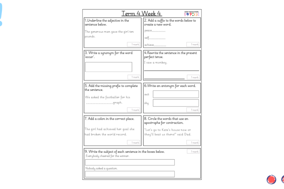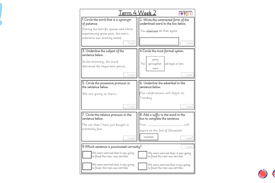 Our weekly tests are designed to provide children with regular opportunities to practise key grammar, punctuation and spelling skills. Each sheet includes a carefully chosen set of short questions that cover essential curriculum objectives, reinforcing knowledge through consistent practice. Alongside… Read More »Term 3 Week 4 Weekly Test