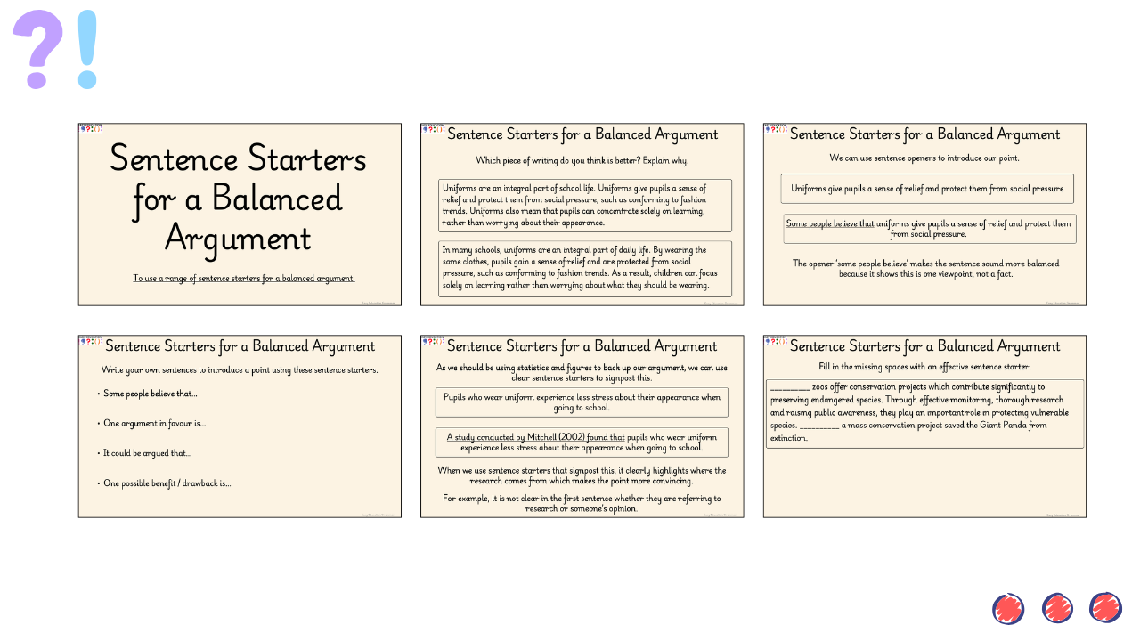 Sentence Openers for a Balanced Argument