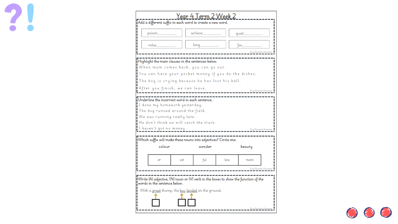 These weekly starters provide short, focused activities designed to reinforce grammar, punctuation and sentence structure skills. They are ideal for settling pupils at the start of an English lesson, revisiting prior learning and building confidence in applying key writing skills.
