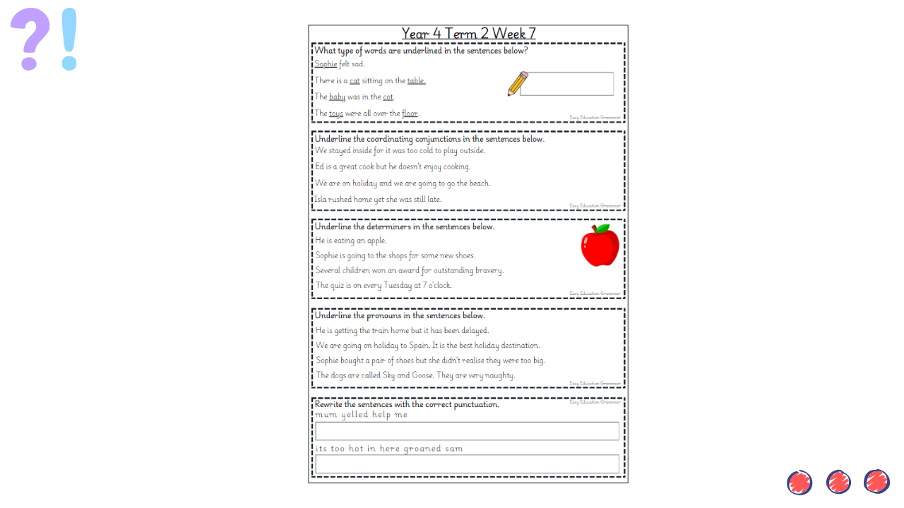 These weekly starters provide short, focused activities designed to reinforce grammar, punctuation and sentence structure skills. They are ideal for settling pupils at the start of an English lesson, revisiting prior learning and building confidence in applying key writing skills.
