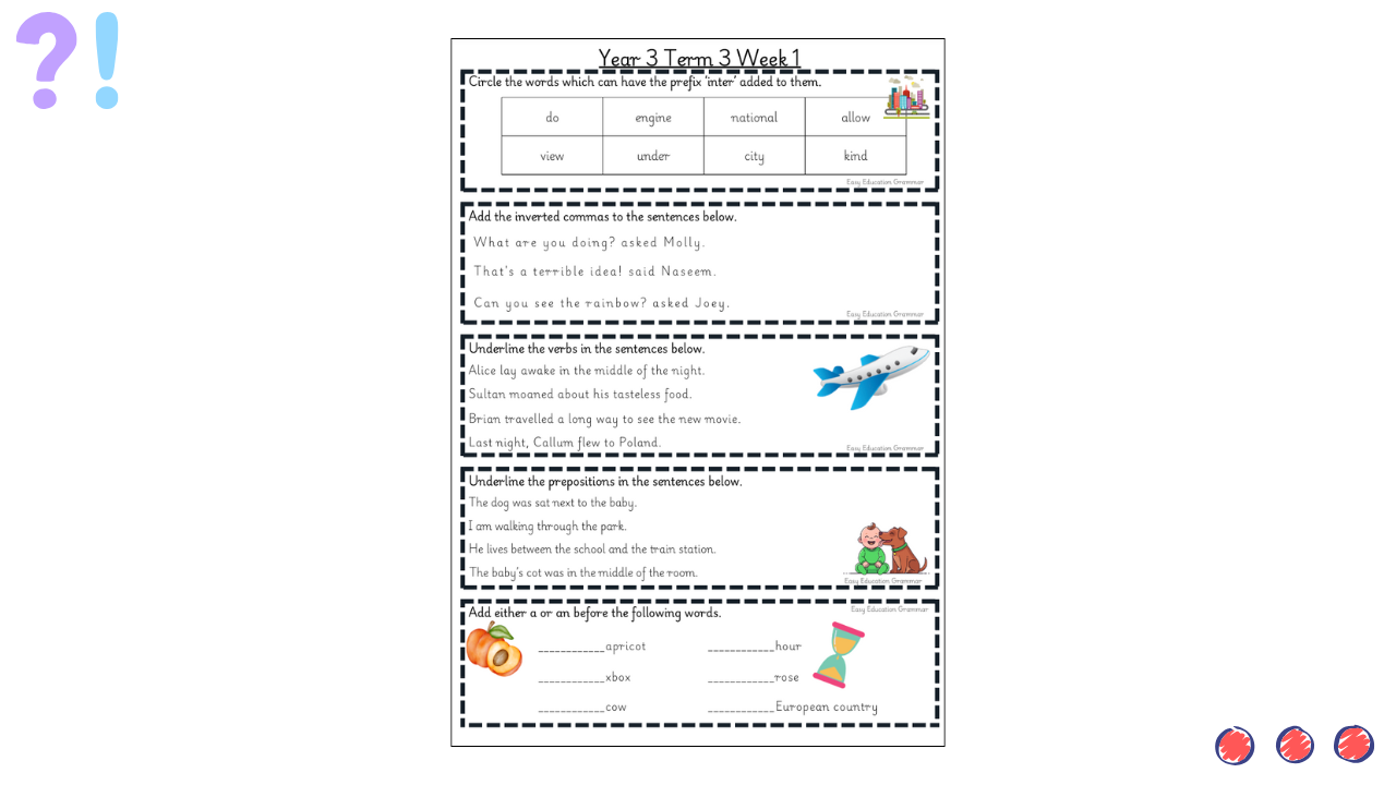 These weekly starters provide short, focused activities designed to reinforce grammar, punctuation and sentence structure skills. They are ideal for settling pupils at the start of an English lesson, revisiting prior learning and building confidence in applying key writing skills.