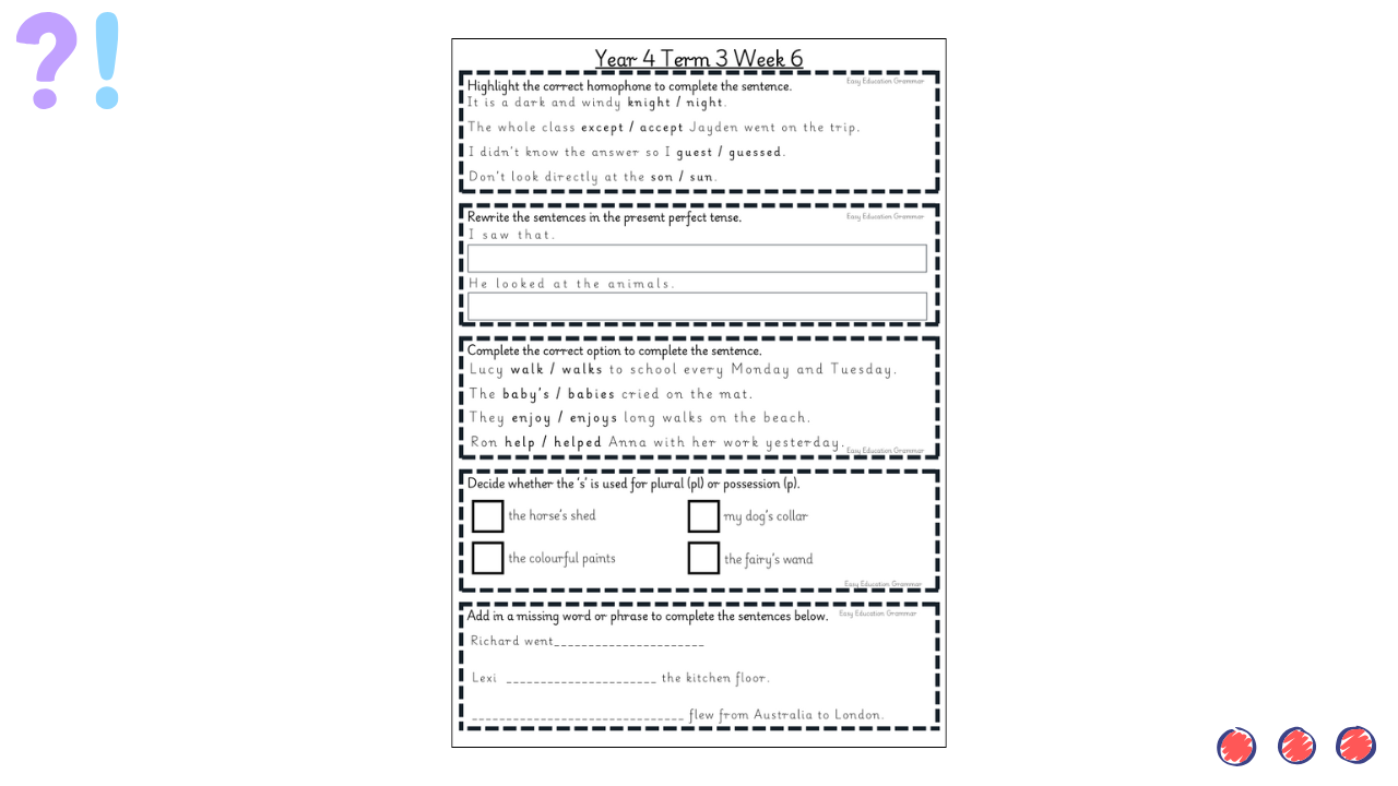 These weekly starters provide short, focused activities designed to reinforce grammar, punctuation and sentence structure skills. They are ideal for settling pupils at the start of an English lesson, revisiting prior learning and building confidence in applying key writing skills.