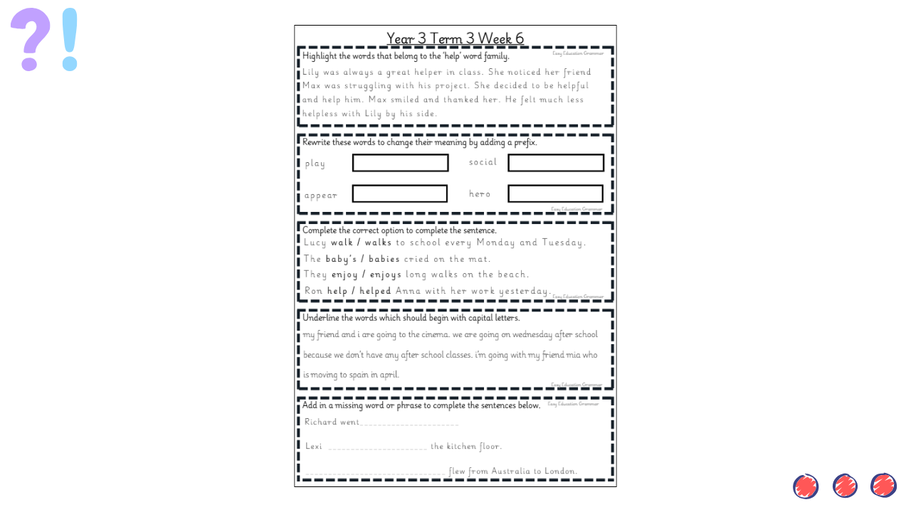 These weekly starters provide short, focused activities designed to reinforce grammar, punctuation and sentence structure skills. They are ideal for settling pupils at the start of an English lesson, revisiting prior learning and building confidence in applying key writing skills.
