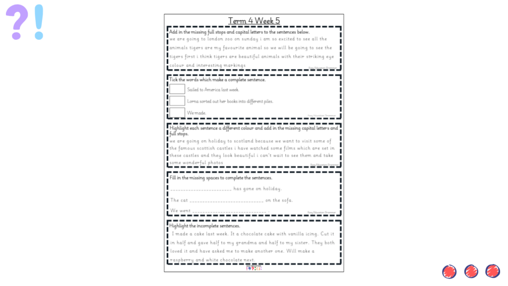 Sentence Building Consolidation Tasks